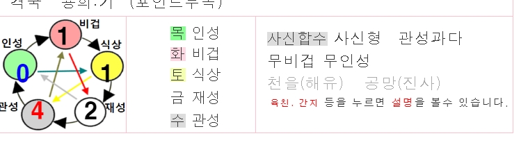 아래 큰 박스에 8가지 글짜가 있습니다. 이는 사주 팔자라고 하는 것 입니다. 이를 통해 천간을 통해 미래와 지지를 통 현재를 확인해볼 수 있습니다.