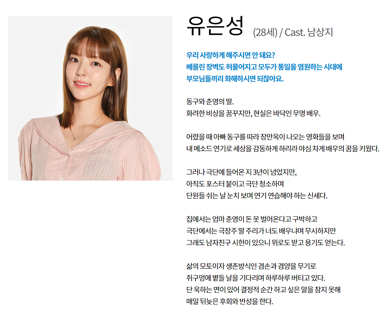 주연은 남상지, 이도겸, 강다빈, 이효나 입니다.