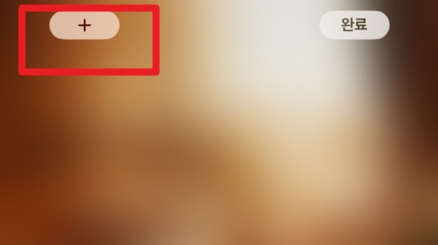 저는 아이폰 기준으로 설명드릴텐데요, 갤럭시의 경우에도 위젯을 만들 수 있습니다. 아이폰에서는 가장 상단에 위치한 + 버튼을 클릭해주면 해당 영역에 위젯이 생성됩니다.