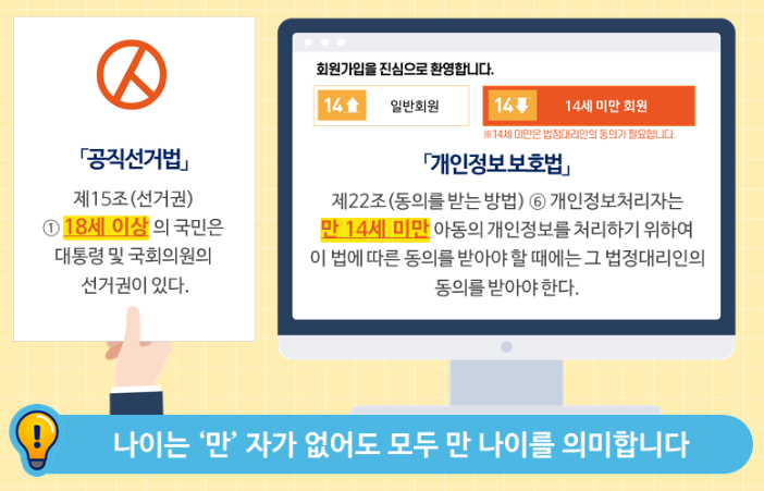 이제는 나이에 만을 붙이지 않아도 만나이로 의미하기 때문에 아래 예시처럼 내가 생각하는 나이가 만나이인지? 연나이인지? 헷갈리지 않아도됩니다.