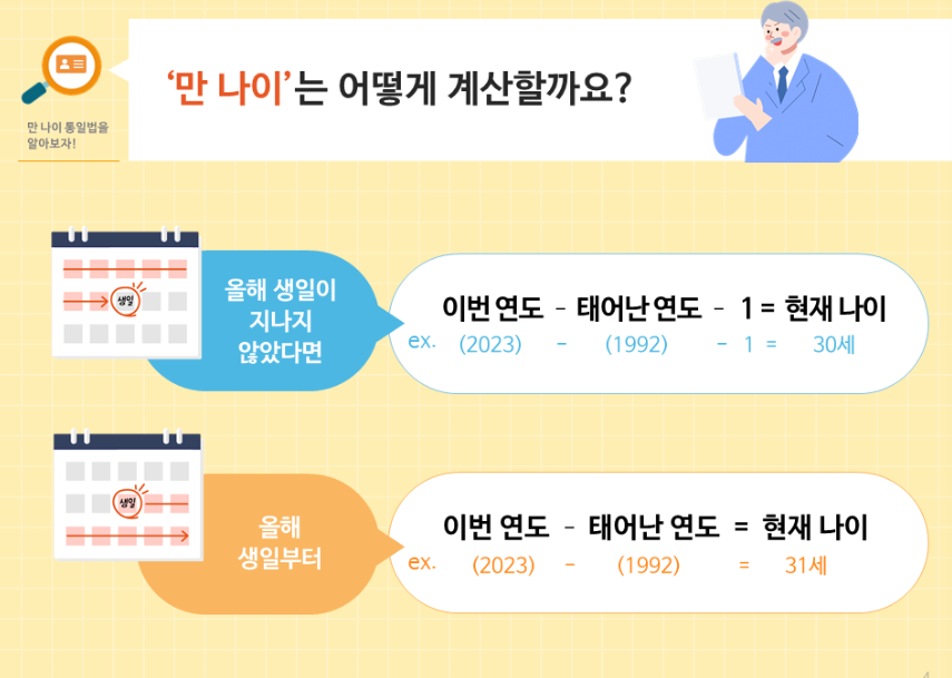 지난 해 만나이에 대해서 참 대두된 한 해였습니다. 그 이유는 윤석렬 정부에서 앞으로의 행정적인 내용이나 복지등을 공표하거나 공지할 때 만나이로 통일하겠다고 하면서 6월 28일부로 만나이 통일법이 시행되었기 때문인데요, 만나이는 어떻게 세는 것 일까요?