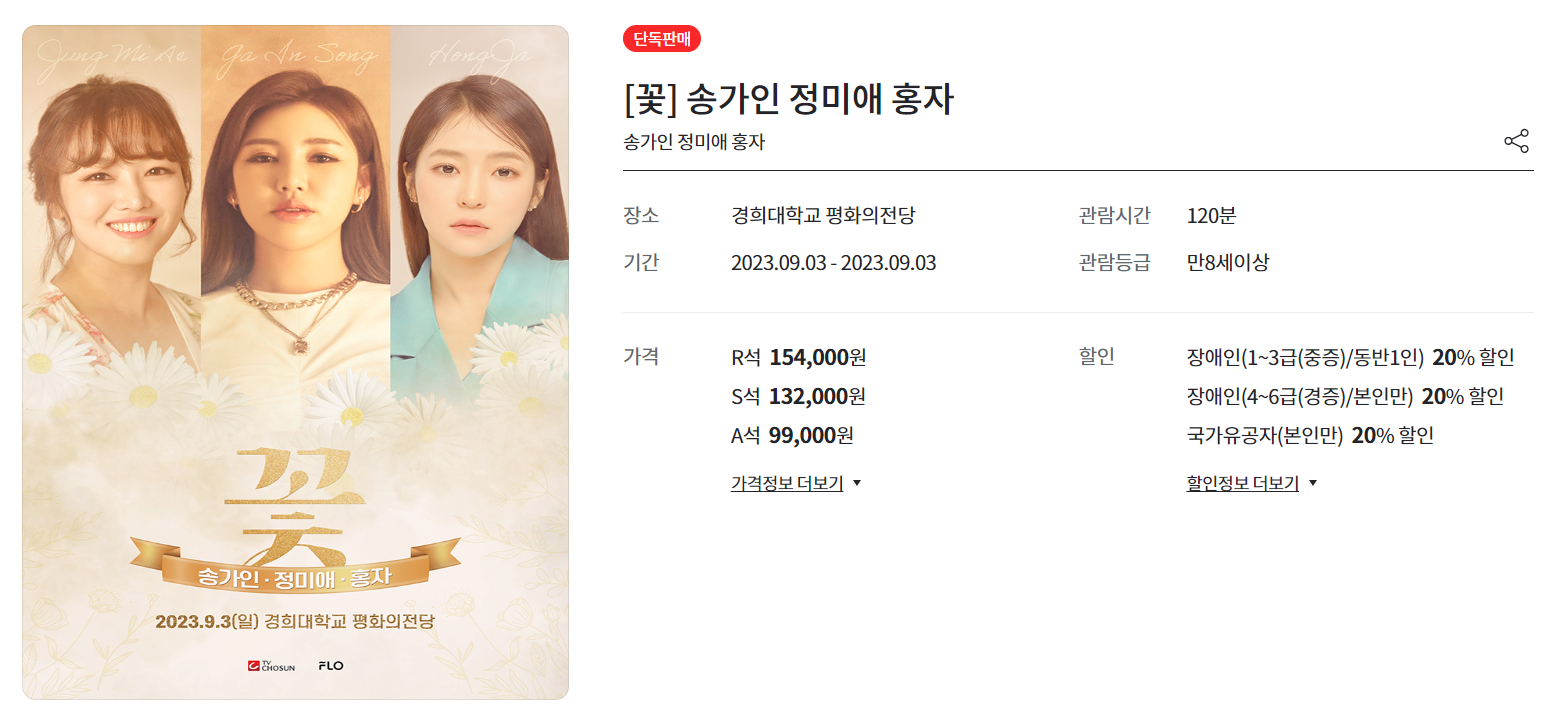 2023년 9월 3일 경희대학교 평화의 전당에서 송가인과 정미애, 홍자의 콘서트가 진행된 바 있습니다.