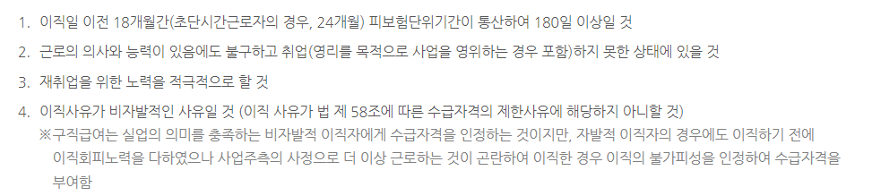 아래 실업급여 지급조건에 대해 확인해보시기 바랍니다.