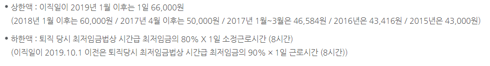 실업급여에는 최저 하한액과 상한액이 정해져 있습니다. 상한액의 경우 66,000원까지 설정되어있는데요 이는 최저임금법상의 최저임금이 매년 바뀌는 것처럼 실업급여 역시 매년 바뀌게 됩니다.