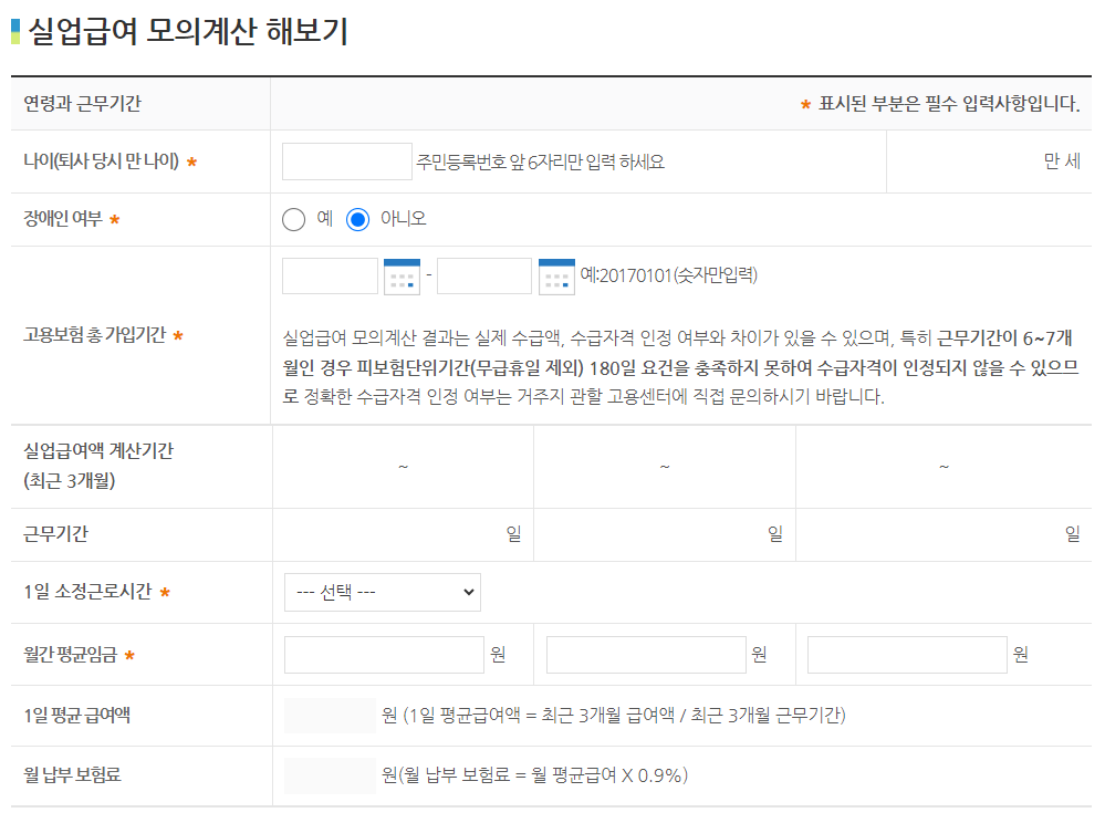실업급여 모의계산기