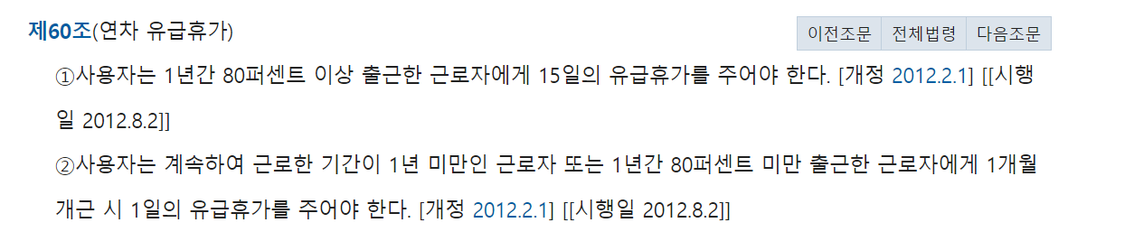 먼저 근로기준법 상에서 이야기하는 연차에 대하여 알아보시기 바랍니다.