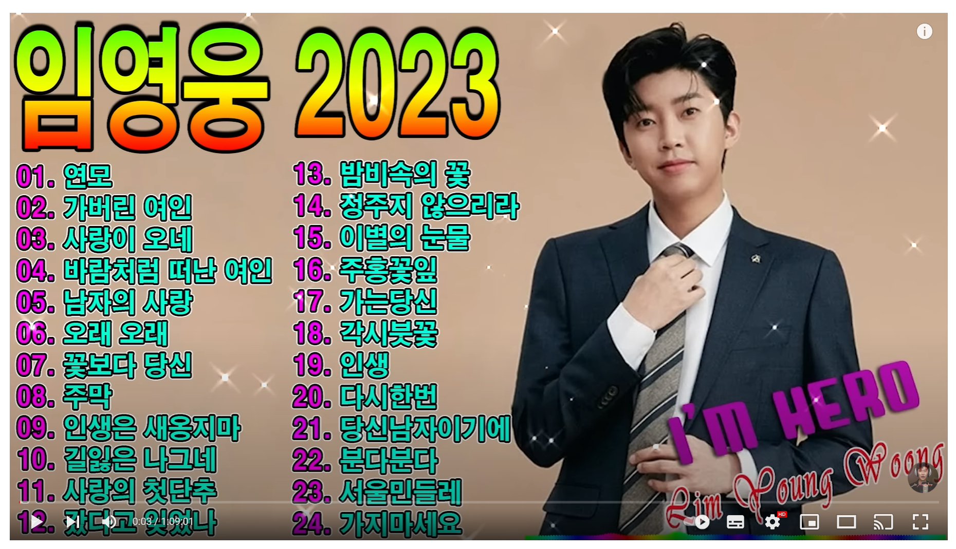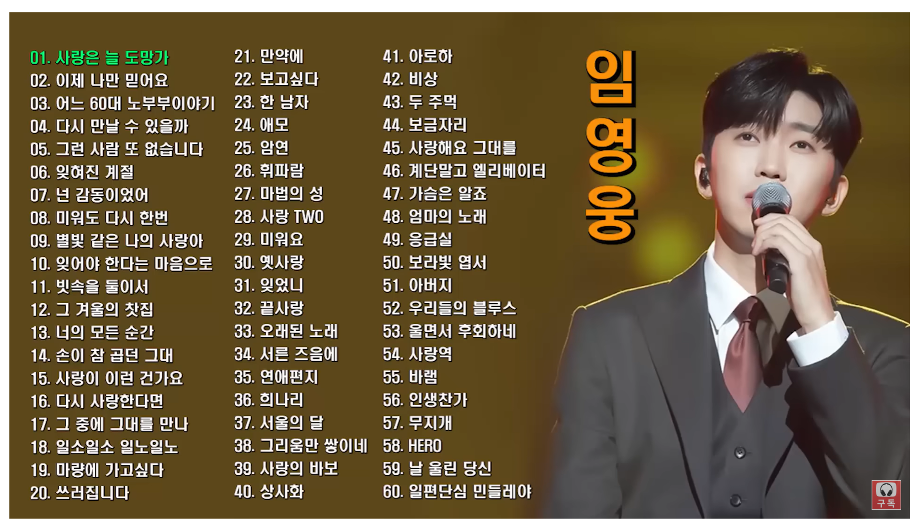 지금부터 임영웅 노래모음을 안내해드리도록 하겠습니다.