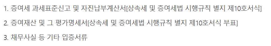 증여세 신고시 제출할 서류는 다음과 같습니다.