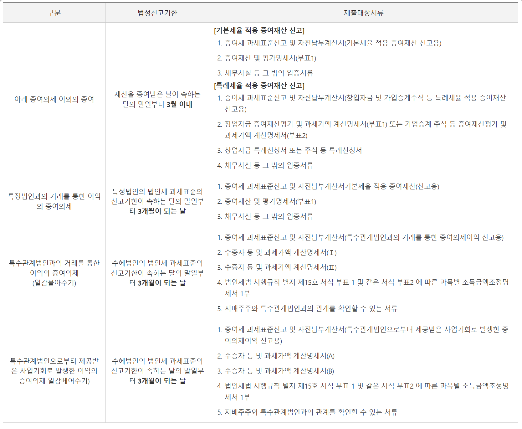 증여세를 신고하는 기간은 증여일이 속한 달의 말일로부터 3개월 이내에 신고 및 납부해야만 합니다. 이 증여의 경우 여러 종류의 증여 방법에 따라 기준이 다를수 있습니다.