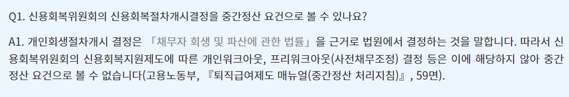 만약 퇴직금을 중간정산을 신청한 날로부터 5년 이내에 파 산을 한 경우에는 경제적인 어려움으로 퇴직금 중간정산이 가능합니다.