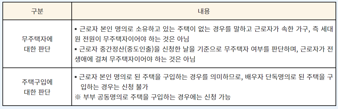 무주택자에 한하여 주택을 매매하는 경우 중간정산이 가능합니다. 꼭 매매가 아니더라도 전세금이라던지 월세 보증금이 필요한 경우에도 가능한데요